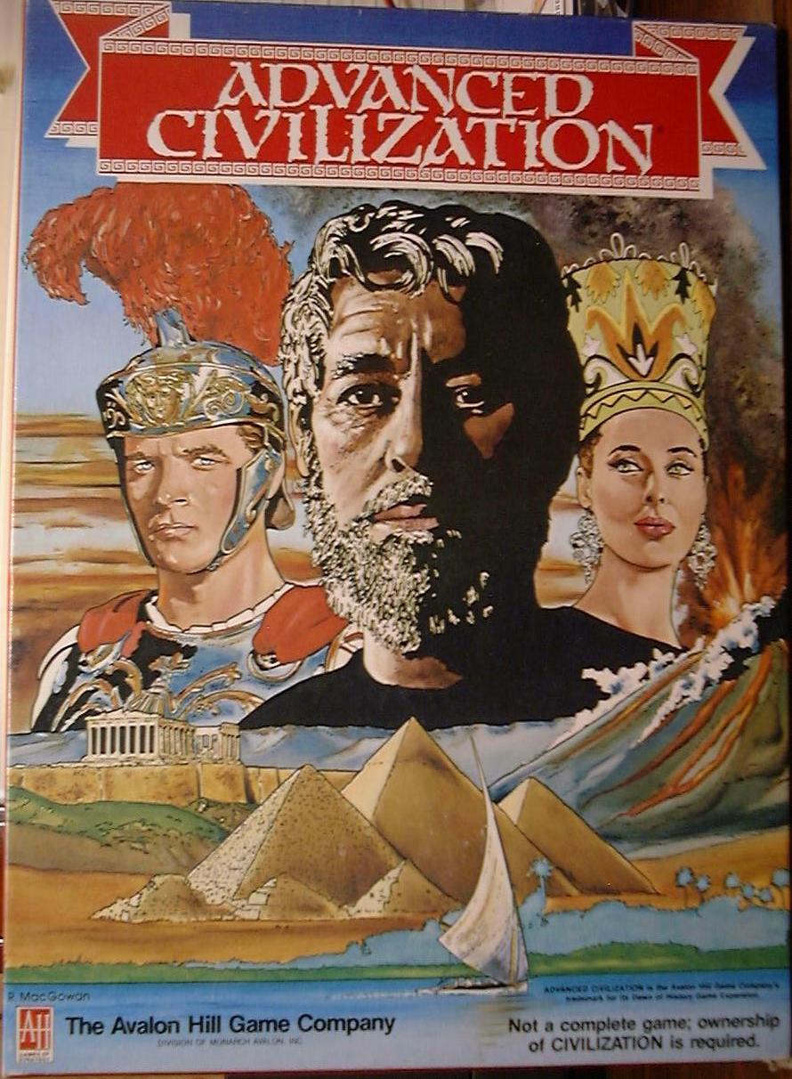 One summer day - a friend of mine (now deceased) introduced our gaming group to Avalon Hill's Civilization. This game while alot of fun - tended to follow the pattern of most of the games I have played - it consumed mass quantities of times and was thus relegated to being played Saturday afternoons when we could anticipate quitting sometime around 2am Sunday mornings. Civilization was a game with enormous replay value - since not one single method of play was guaranteed to be effective for all of the civilizations in the game. What worked for the Africans certainly would not be practical for the Egyptians. The game was fascinating to me - since it was played on more than one level - unlike games such as Star Fleet Battles and Ironclads - there was more going on in the game than just what was being shown on the gameboard. Not only did players need to expand their civilizations into terrain that was fertile enough to support their growth - but they needed to develop their technologies to advance thru the different ages encompassed by the game. This was probably our first game to ever have house rules - since some of the rules could quickly lead to civilizations never getting off the ground - and instead being subjected to endless disastors contributed by the generosity of the other players.